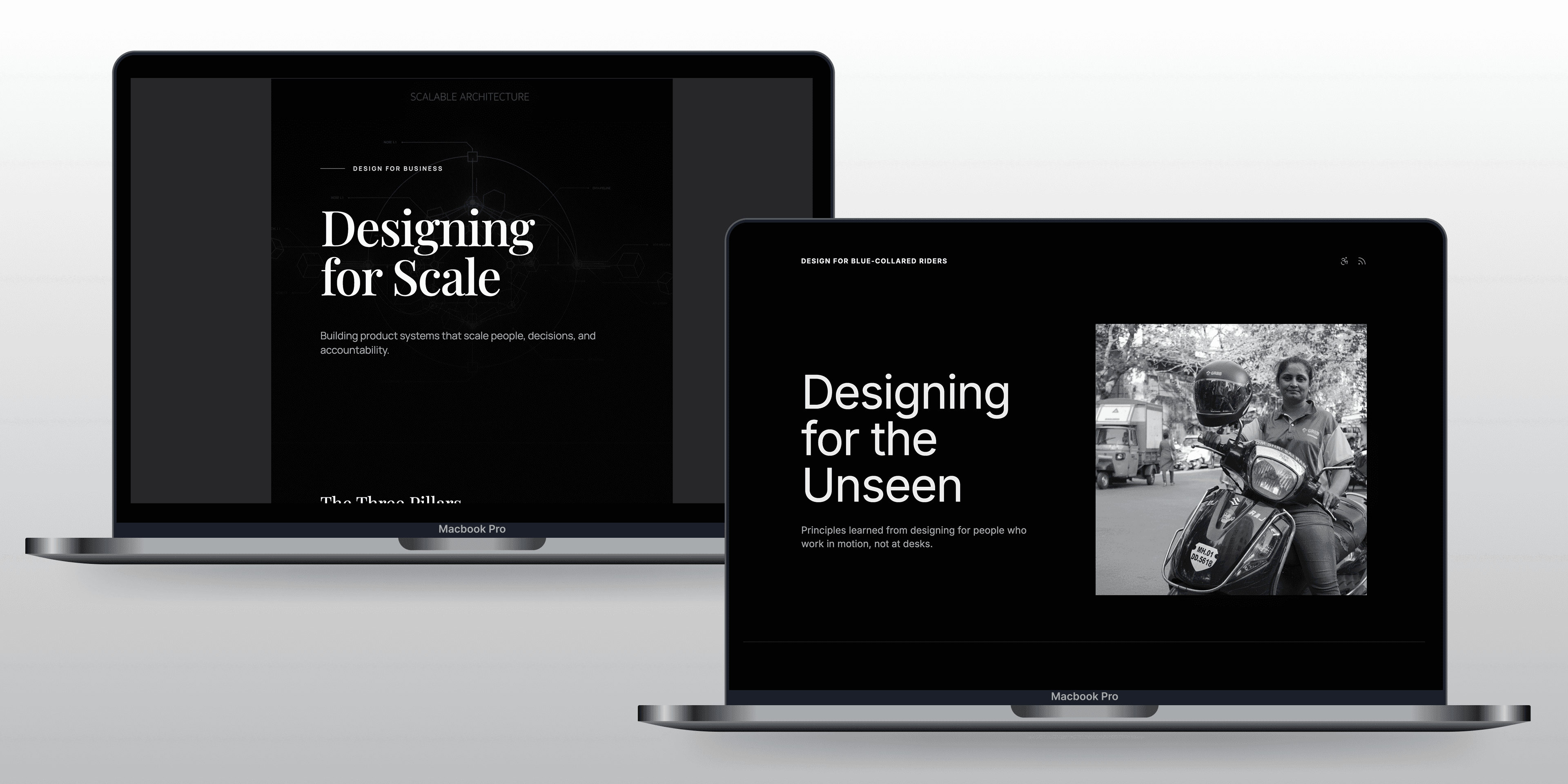 I lead design as an organisational function, not just a delivery role. This includes setting direction, defining ownership, and ensuring design decisions stay coherent as products, teams, and constraints scale.