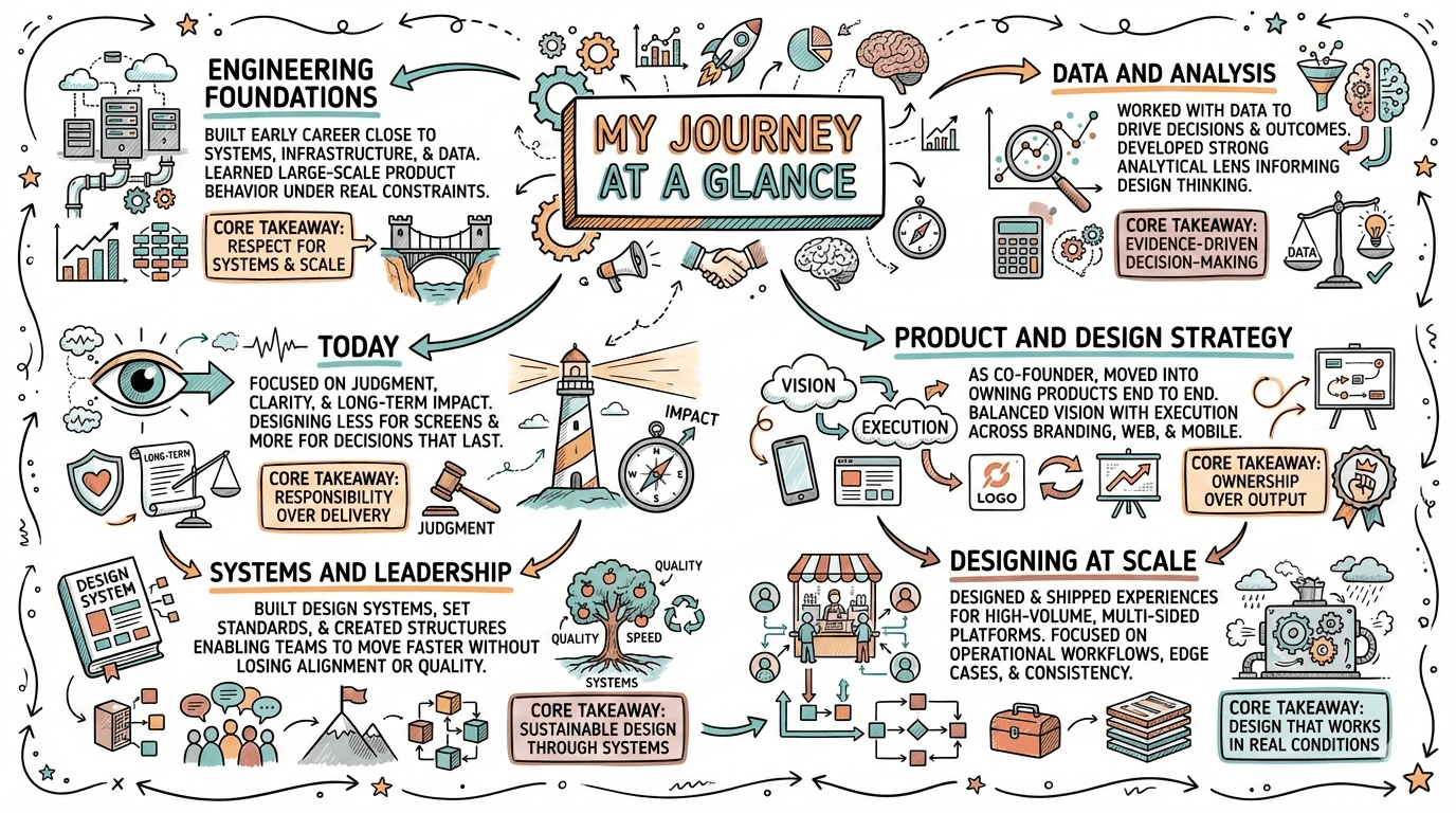 "The best design work isn't just what you ship—it's the knowledge you formalize. " I believe systematic thinking should be shared, not hoarded. These aren't theoretical explorations—they're practical frameworks born from shipping at scale, solving real constraints, and learning what actually works under pressure.